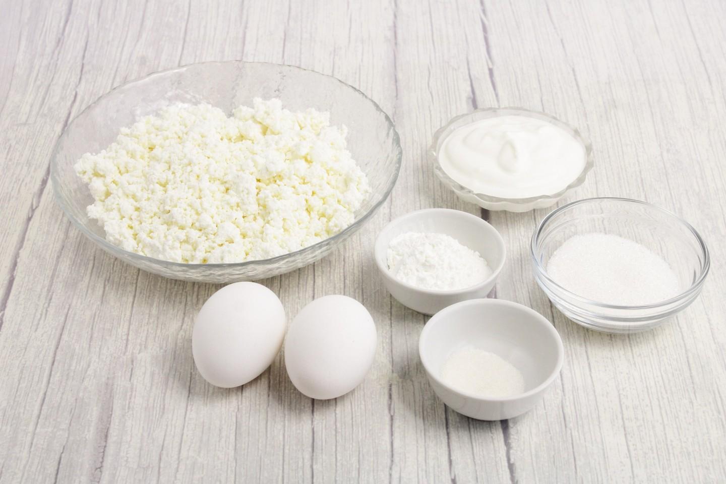 Подготовьте продукты для начинки. Яйца помойте, так как даже на кажущейся чистой скорлупе могут находиться вредные бактерии. Творог выбирайте мягкий, умеренно влажный. Жирность творога и сметаны подойдет любая, руководствуйтесь своими предпочтениями. Ванильный сахар можно заменить ванилином. О замене этих продуктов читайте в статье по ссылке в конце рецепта. Вместо кукурузного крахмала можно взять картофельный.