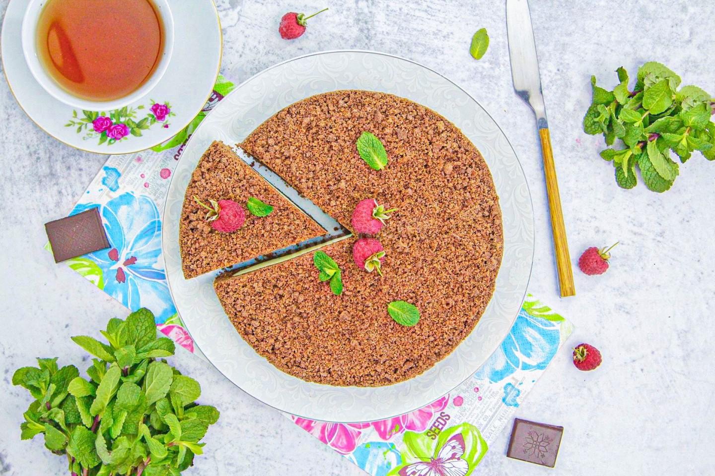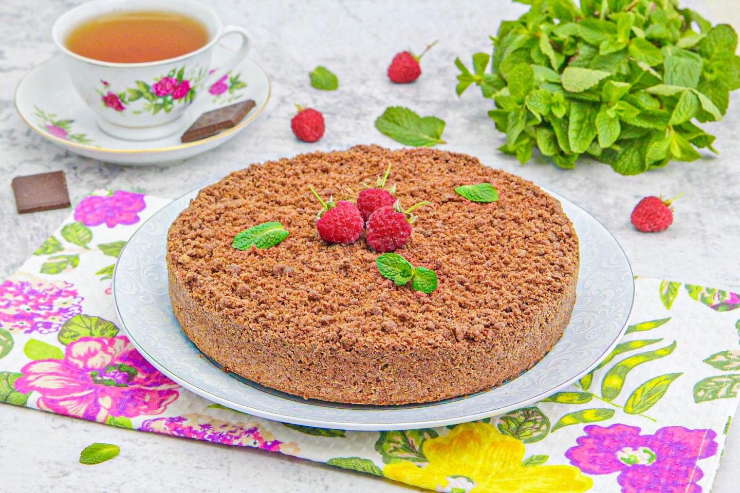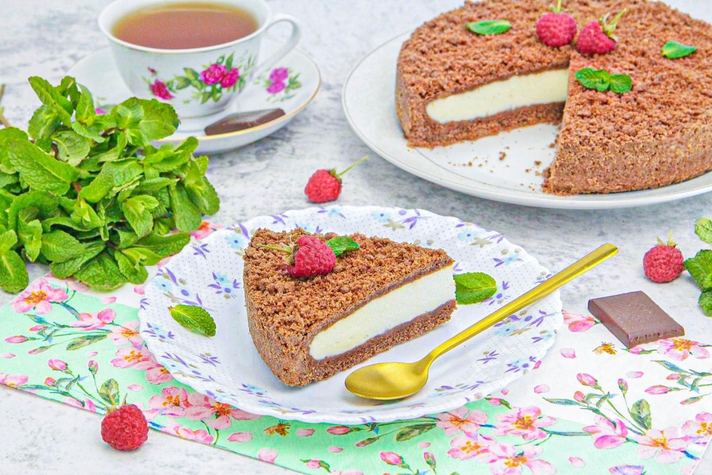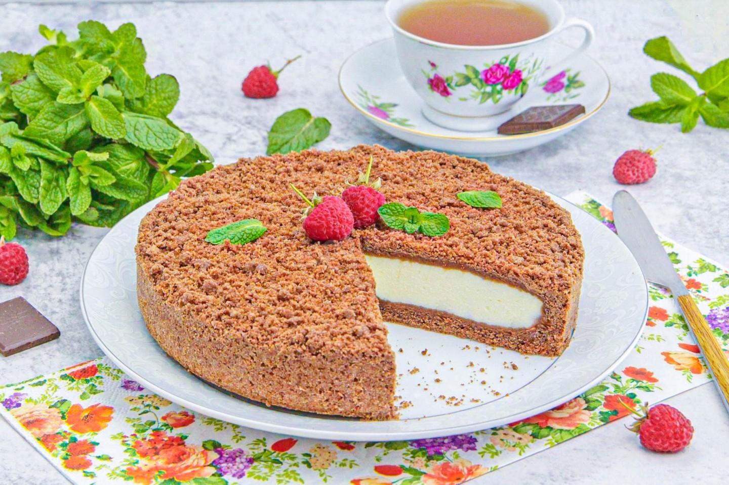 Этот пирог — вариация на тему немецкого песочного пирога (Streuselkuchen), где главную роль играет хрустящая крошка. Наш шоколадный пирог с творогом — симбиоз европейской традиции выпечки и любви к творогу на постсоветском пространстве. Интересно, что в разных культурах такой тип пирога называют «разрыв-трава» из-за эффектной текстуры в разрезе.