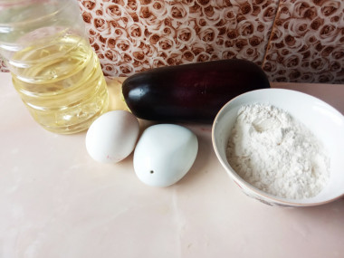 Как пожарить баклажаны в кляре на сковороде? Подготовьте все необходимые ингредиенты. Баклажаны лучше всего брать сезонные отечественные грунтовые. Берите не очень крупные экземпляры - будем резать баклажан кружками и надо чтобы они были не очень большого размера. Масло может быть любое растительное: от подсолнечного до кунжутного. Также и мука: я использую пшеничную, но это может быть и любая другая. Например, рисовая будет тут очень кстати.