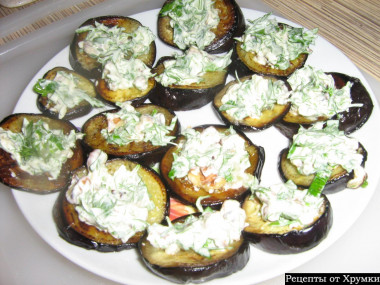 Как самостоятельное блюдо, такие баклажаны прекрасно сочетаются с чесноком и свежей зеленью. Отлично будет дополнить их майонезом или сметаной.