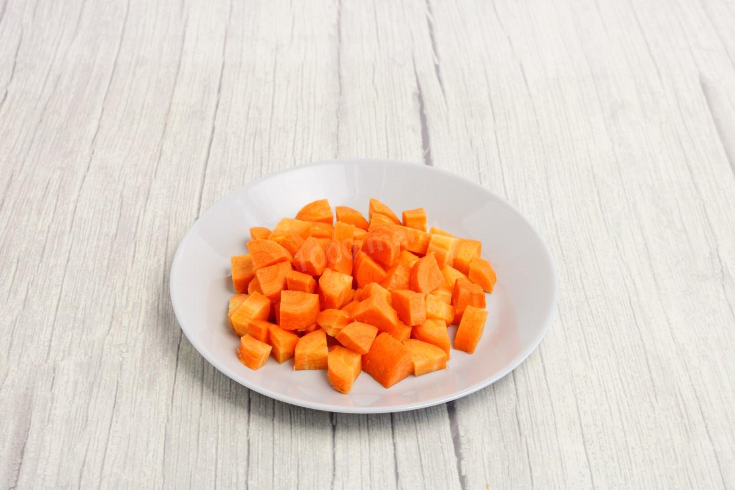 Пока варится перловка, морковь очистите, сполосните. Нарежьте морковь нетонкими кружочками. Разрежьте кружочки на половинки или четвертинки. Имейте в виду, что от того, как Вы измельчите морковь, зависит и конечный результат в этом блюде: натертая морковь в процессе термической обработки превратится в кашицу и равномерно смешается с крупой, нарезанная крупными кусочками сохранит свою форму.