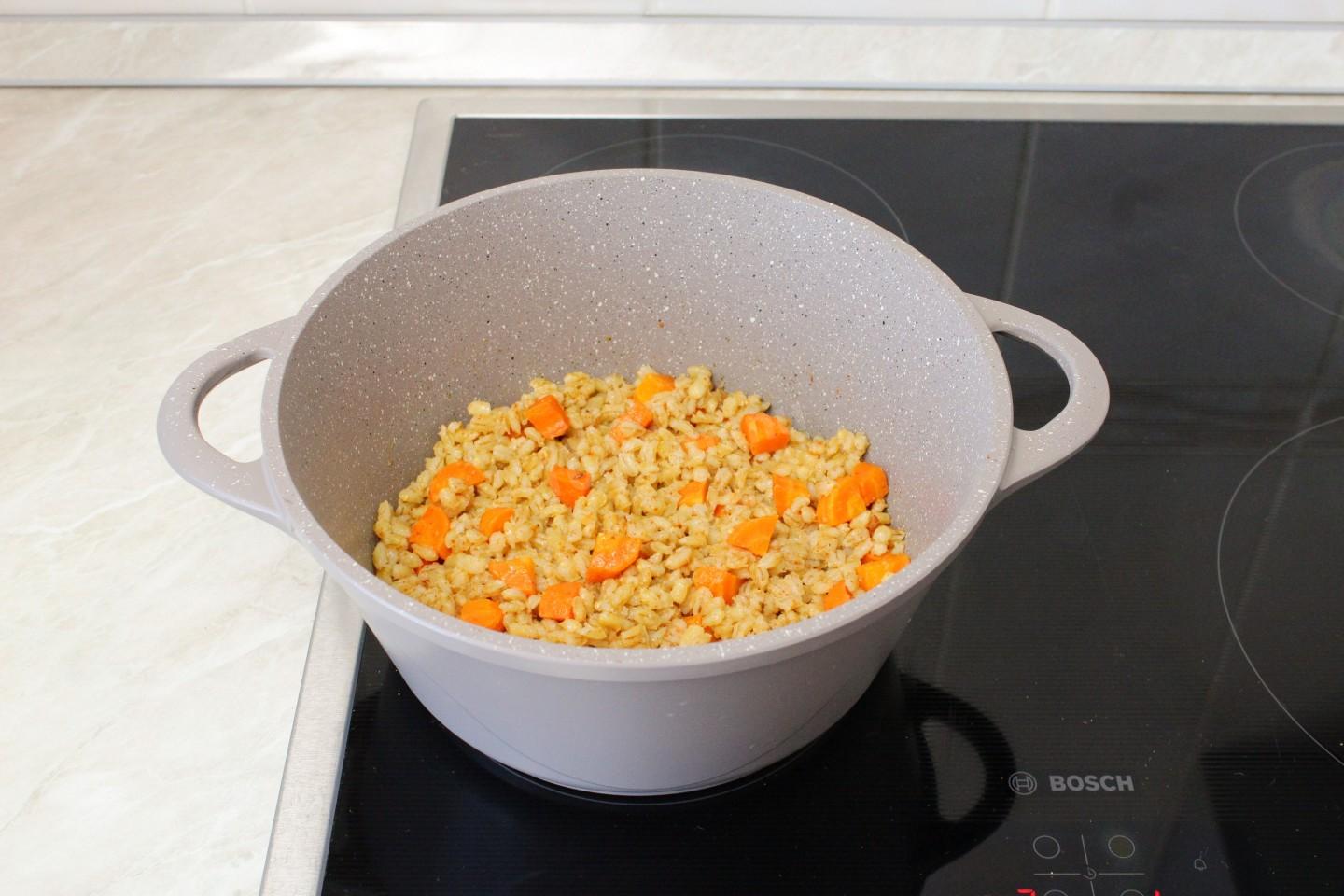 Для веганской версии замените сливочное масло на растительное (2-3 ст. ложки). Чтобы снизить калорийность, морковь можно не обжаривать, а слегка припустить на сковороде с водой и специями. Крупу в таком случае тоже обжаривать не нужно, просто варите дольше.