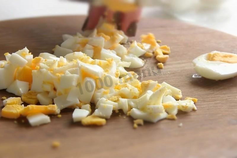 Нарежьте яйцо.