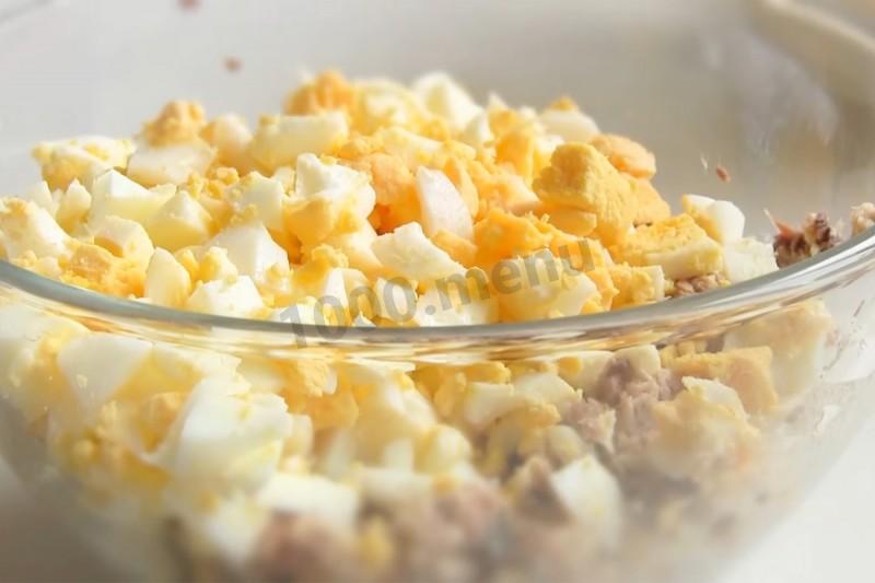 Добавьте нарезанное яйцо к рыбе.