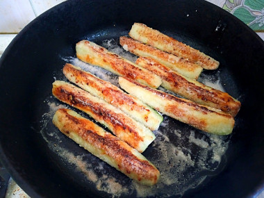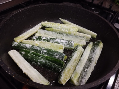 В сковороду отправьте огурцы. Обжарьте их на сильном пламени до золотистой корочки.