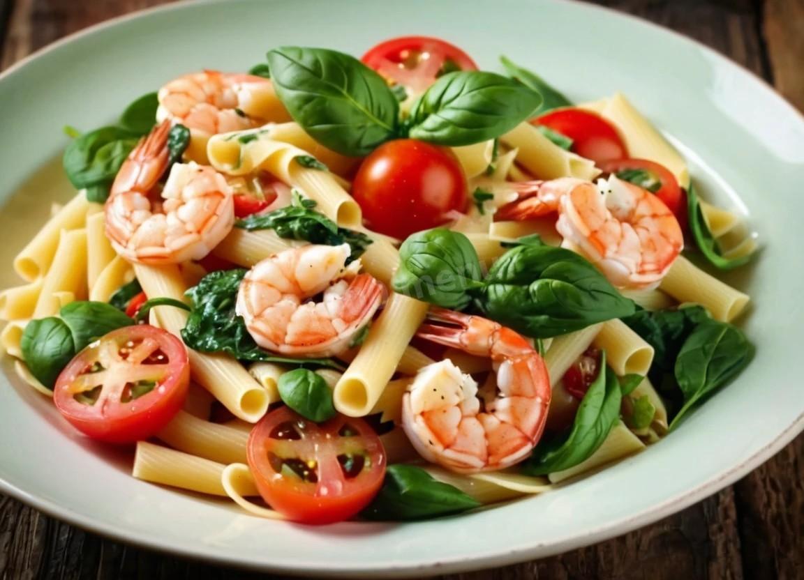 Исторически, морепродукты и паста стали основой средиземноморской кухни, а сочетание креветок с зеленью было излюбленным на протяжении веков. Это блюдо не только сытное и питательное, но и насыщает витаминами благодаря шпинату и помидорам.