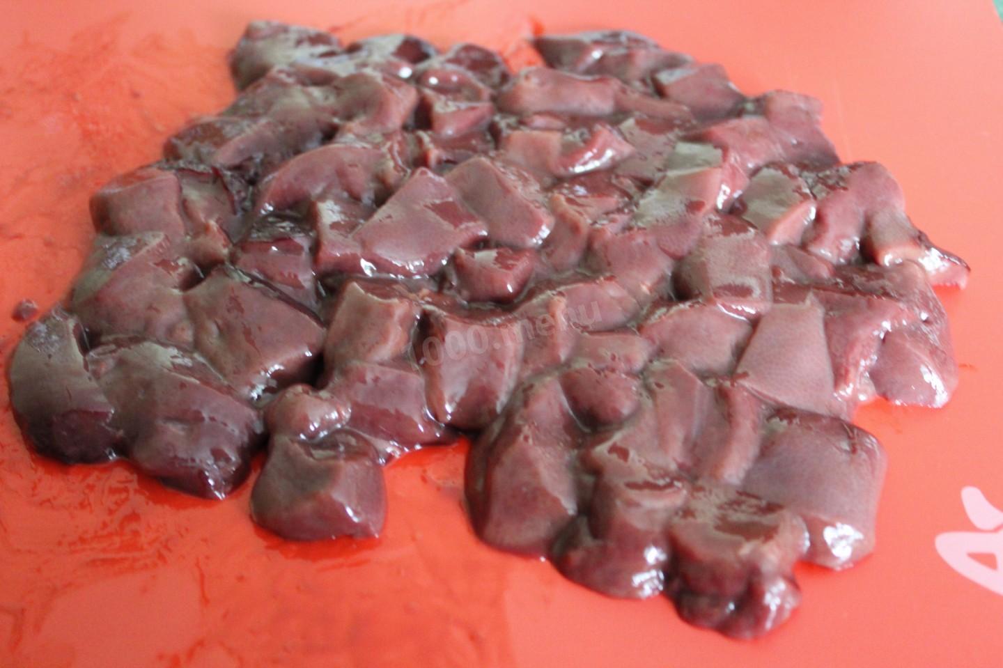 Как запечь говяжью печень в горшочках? Подготовьте все необходимые ингредиенты. Печень нарезать кубиками и посолить.