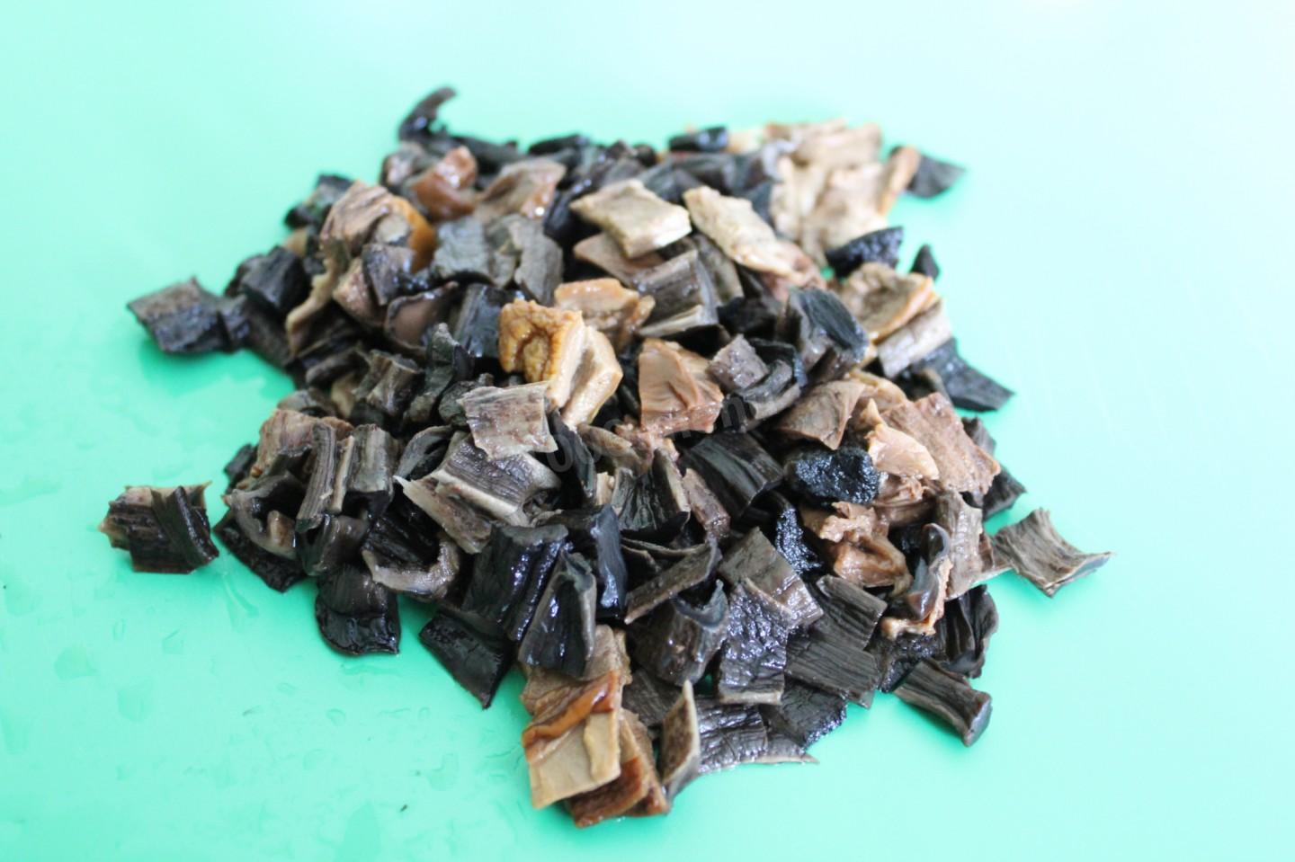 Сушеные грибы залить водой,промыть несколько раз,сменяя воду. Тщательно промытые грибы залить холодной водой,оставить на 2-3 часа для набухания,затем сварить в той же воде до готовности.Шаг 3: