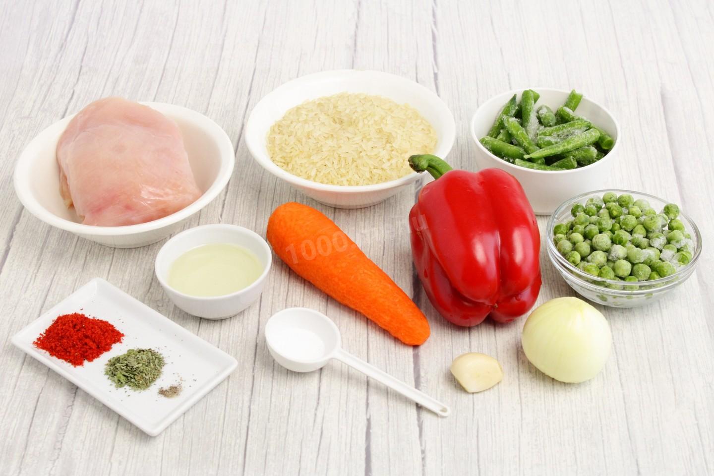 Подготовьте продукты. Подойдет филе с любых частей курицы: грудки, бедра, голени. Рис возьмите длиннозерный пропаренный. Растительное масло используйте без запаха. Набор овощей можно дополнить или изменить. Замороженные овощи можно предварительно не размораживать.
