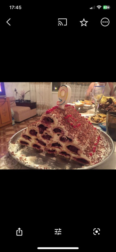Вместо привычных трубочек, сложенных домиком, я решила "сделать избу круглой"😊. Трубочки чудесно свернулись улиткой и вышло 4 коржа, которые я перемазала воздушным сметанным кремом. А в сочетании с кислинкой вишни в собственном соку - это бомба! Все гениальное - просто!