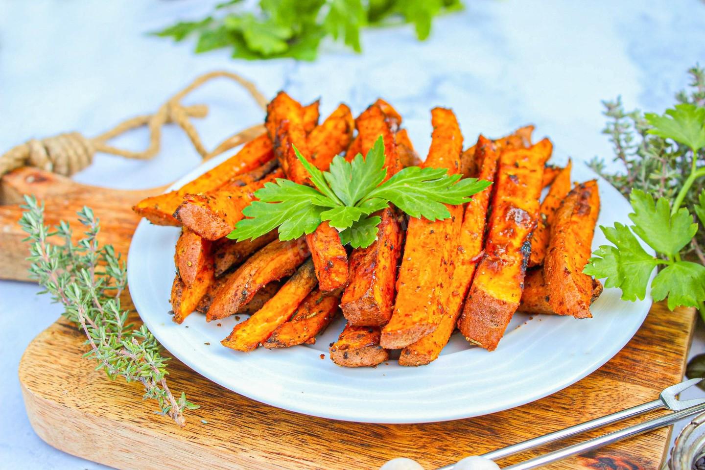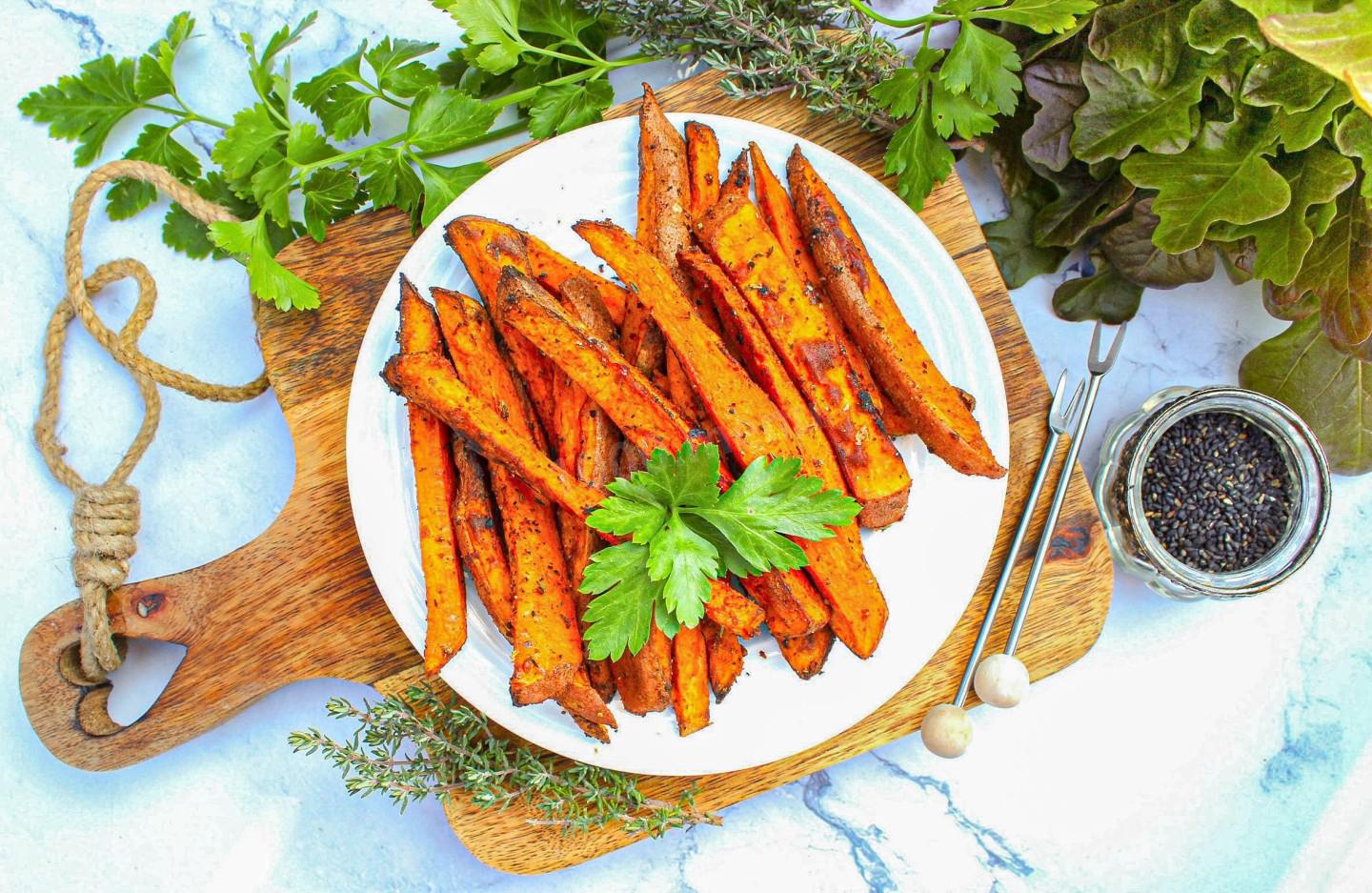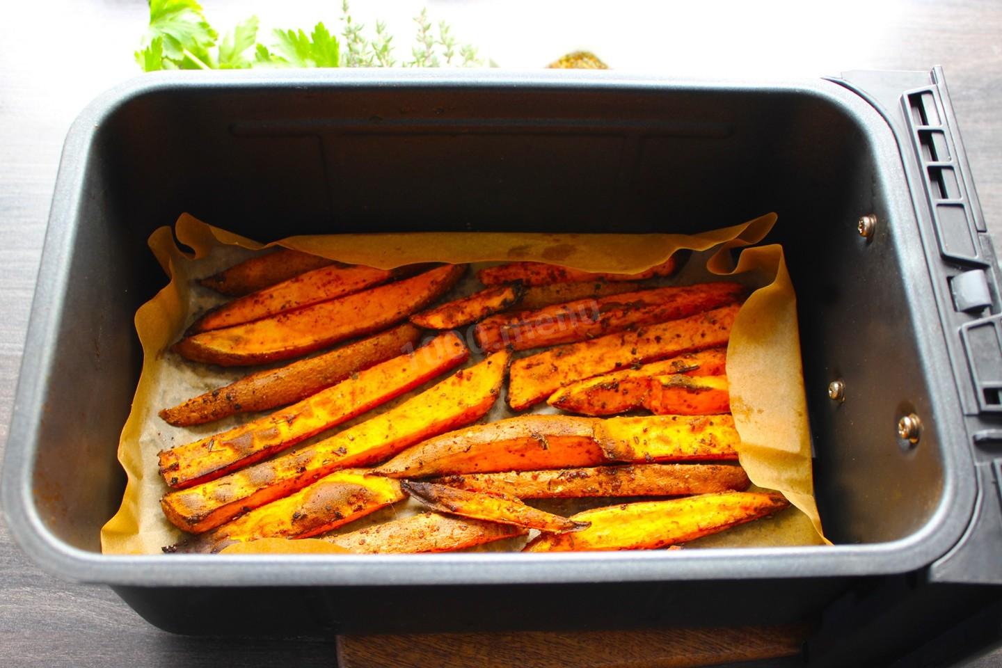 Батат, или сладкий картофель, родом из Южной Америки, но его часто путают с обычным картофелем, хотя они даже не родственники. В Перу археологи нашли следы приготовления батата возрастом 8000 лет! Интересно, что в Японии и Китае его запекают прямо в кожуре на углях, считая это уличным лакомством. Наш вариант в аэрогриле — современная интерпретация этой древней традиции.