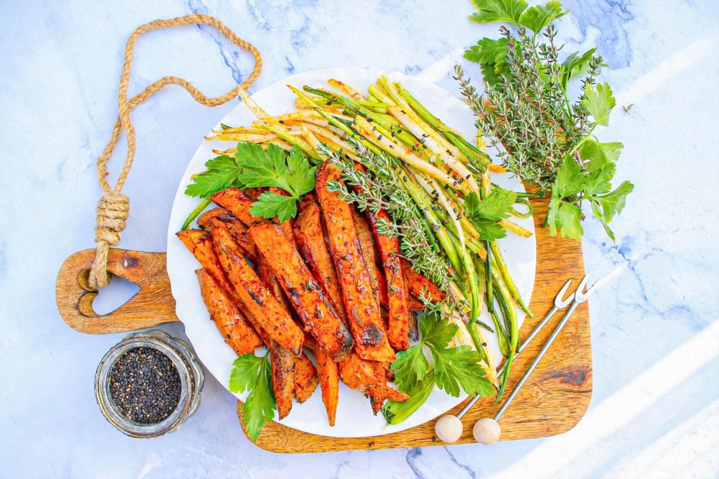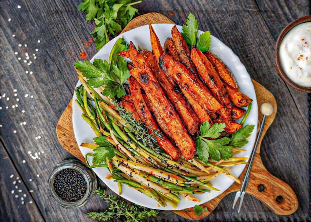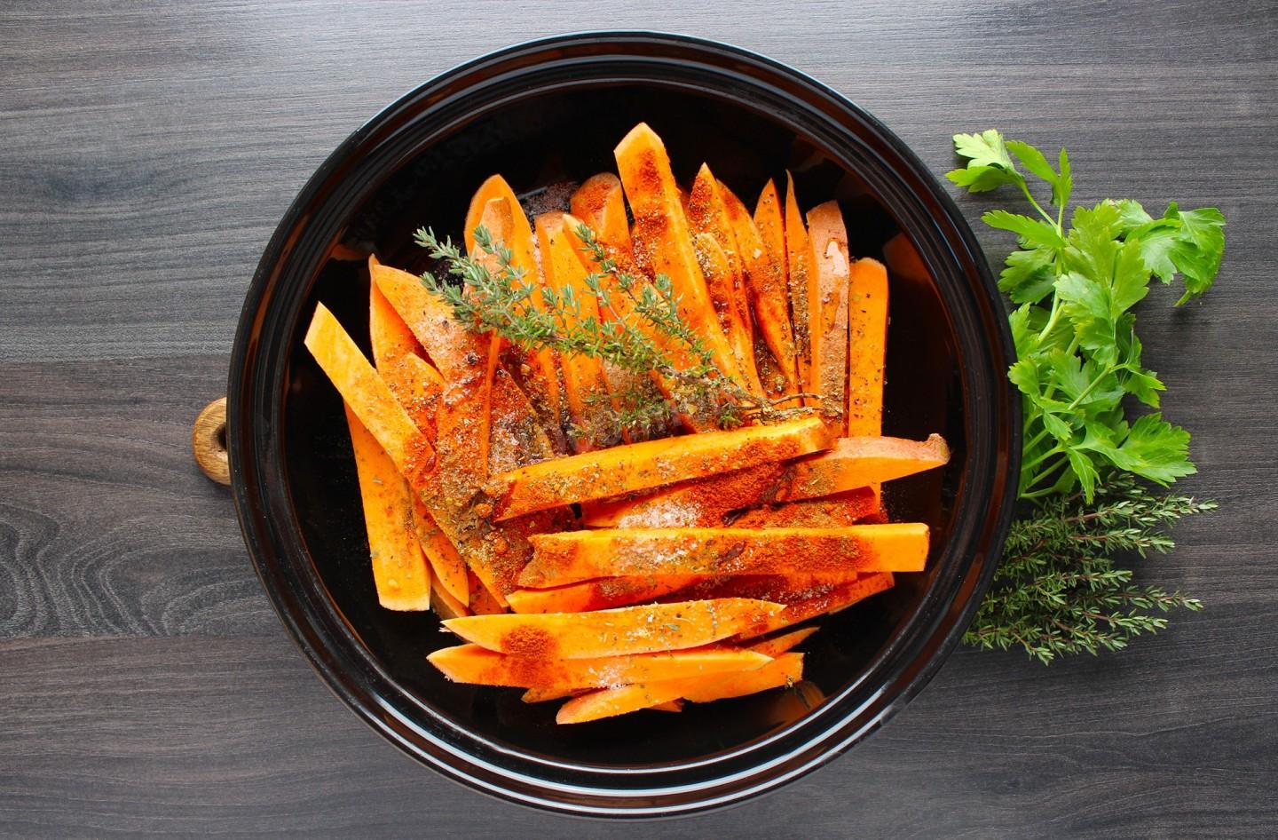 Батат, или сладкий картофель, родом из Южной Америки, но его часто путают с обычным картофелем, хотя они даже не родственники. В Перу археологи нашли следы приготовления батата возрастом 8000 лет! Интересно, что в Японии и Китае его запекают прямо в кожуре на углях, считая это уличным лакомством. Наш вариант в аэрогриле — современная интерпретация этой древней традиции.