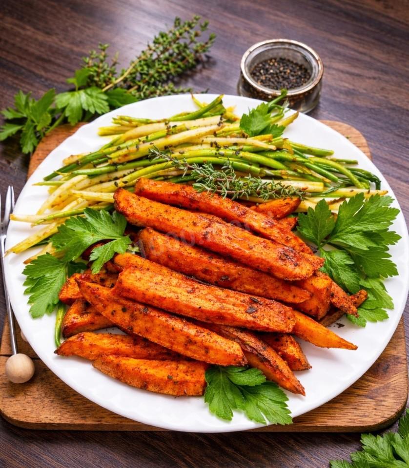 Батат в аэрогриле сохраняет максимум витамина А и клетчатки, в отличие от жарки в масле. Благодаря запеканию, сладкий картофель имеет более низкий гликемический индекс, а итальянские травы и тимьян улучшают пищеварение. Это сытный, но легкий гарнир, который дарит энергию и отлично вписывается в концепцию здорового питания.