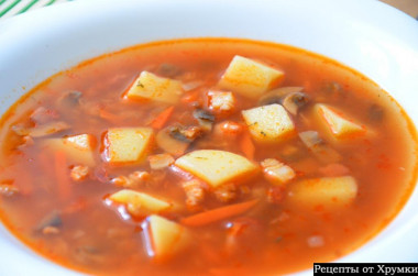 чечевицу очень люблю, особенно за то что она так быстро готовится! За пол часа получился очень вкусный супчик!!! Добавила еще немного грибочков и сладкого перчика порезала получился очень ароматный суп!