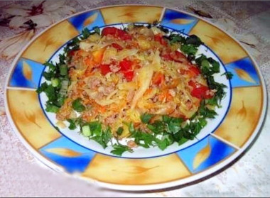 Капусту, тушенную с фаршем, подавайте к столу со свежей зеленью. Приятного аппетита!