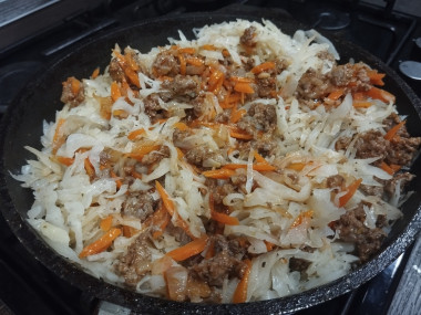 Для дочки приготовила капусту с фаршем тушеную на сковороде, ей нравится такое сочетание.