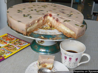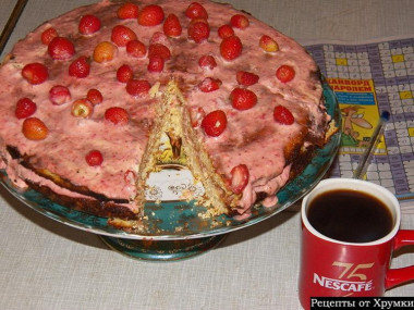 А вот еще один торт, опять не с шампанским, а желе с молоком и клубничным конфитюром. Ну, а шампанское остается в силе...