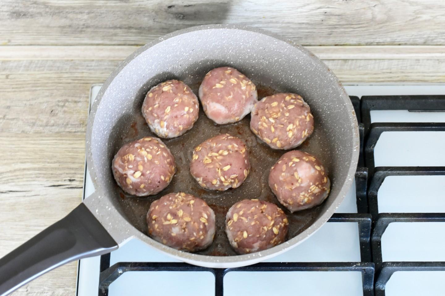 Шаг 6. Как пожарить котлеты с овсяными хлопьями и фаршем на сковороде?