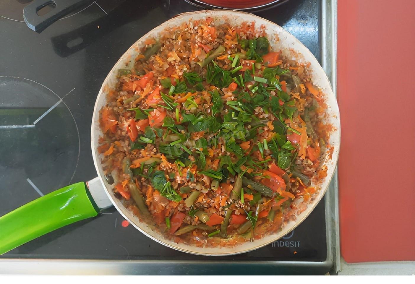 Это блюдо - отличное сочетание полезной гречки и нежной стручковой фасоли, которое идеально подойдет для завтрака, обеда или ужина. Нежная, рассыпчатая гречка, пропитанная ароматами обжаренных овощей, встречается с яркой стручковой фасолью.