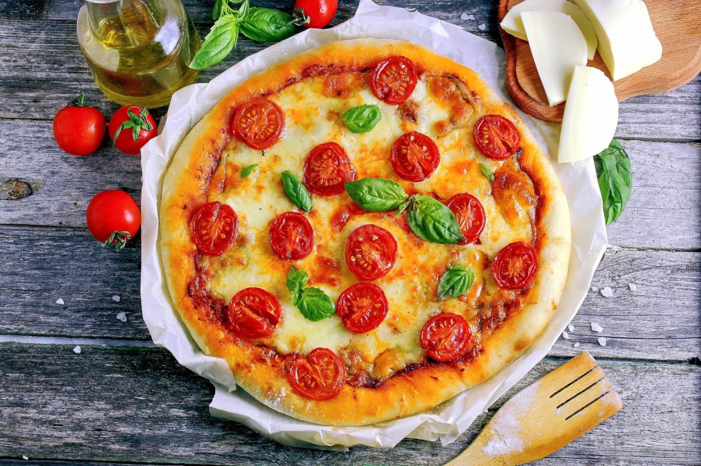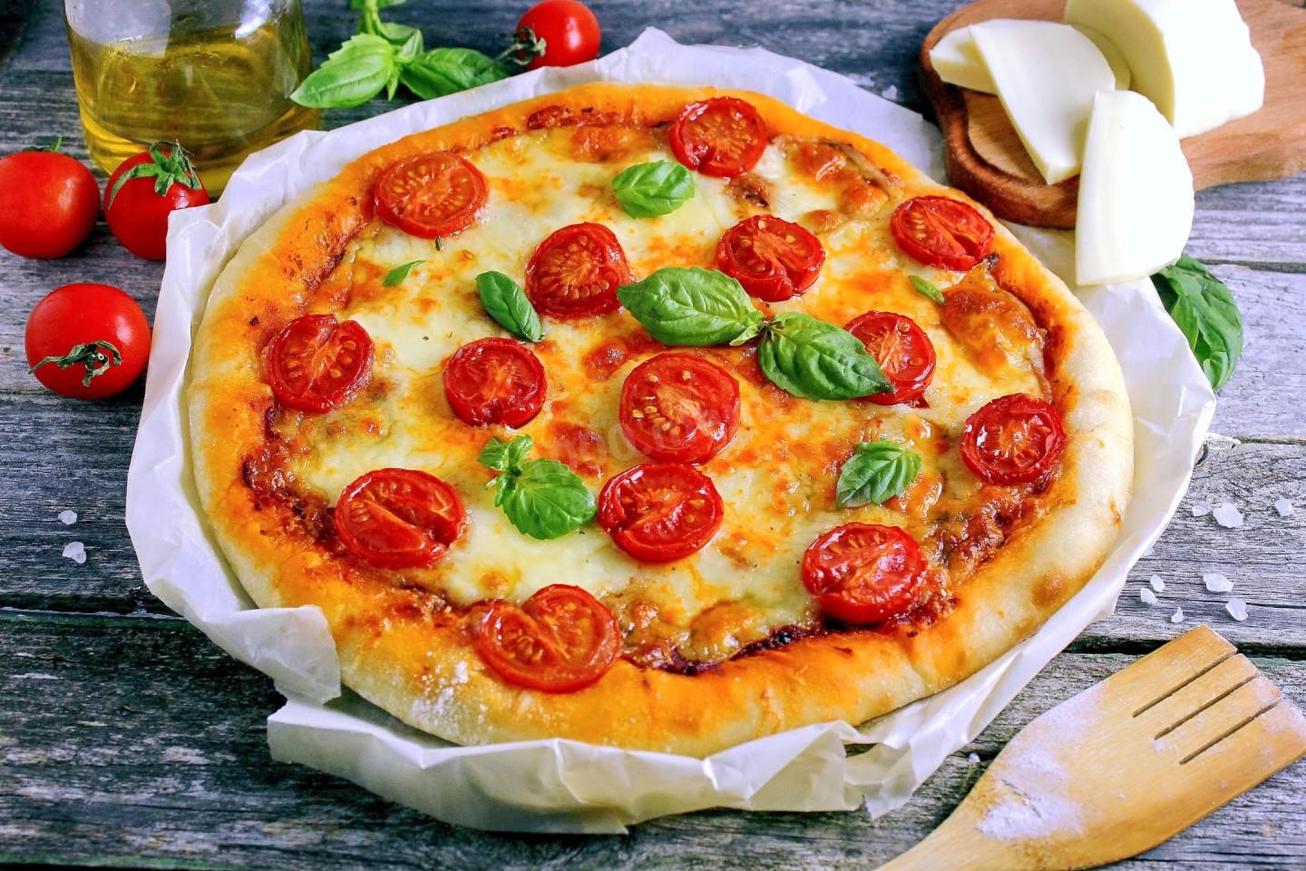 Пицца с помидорами и сыром