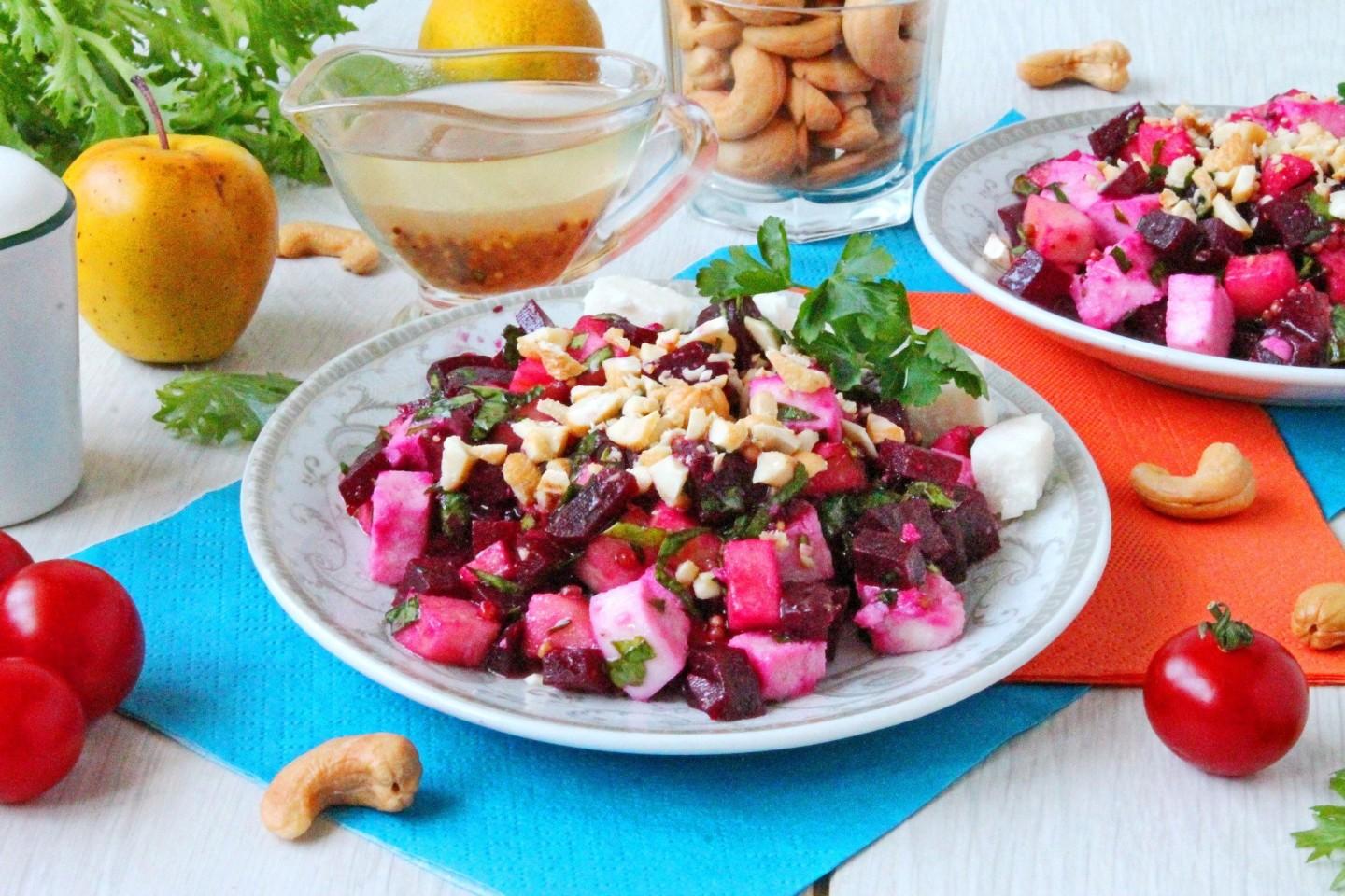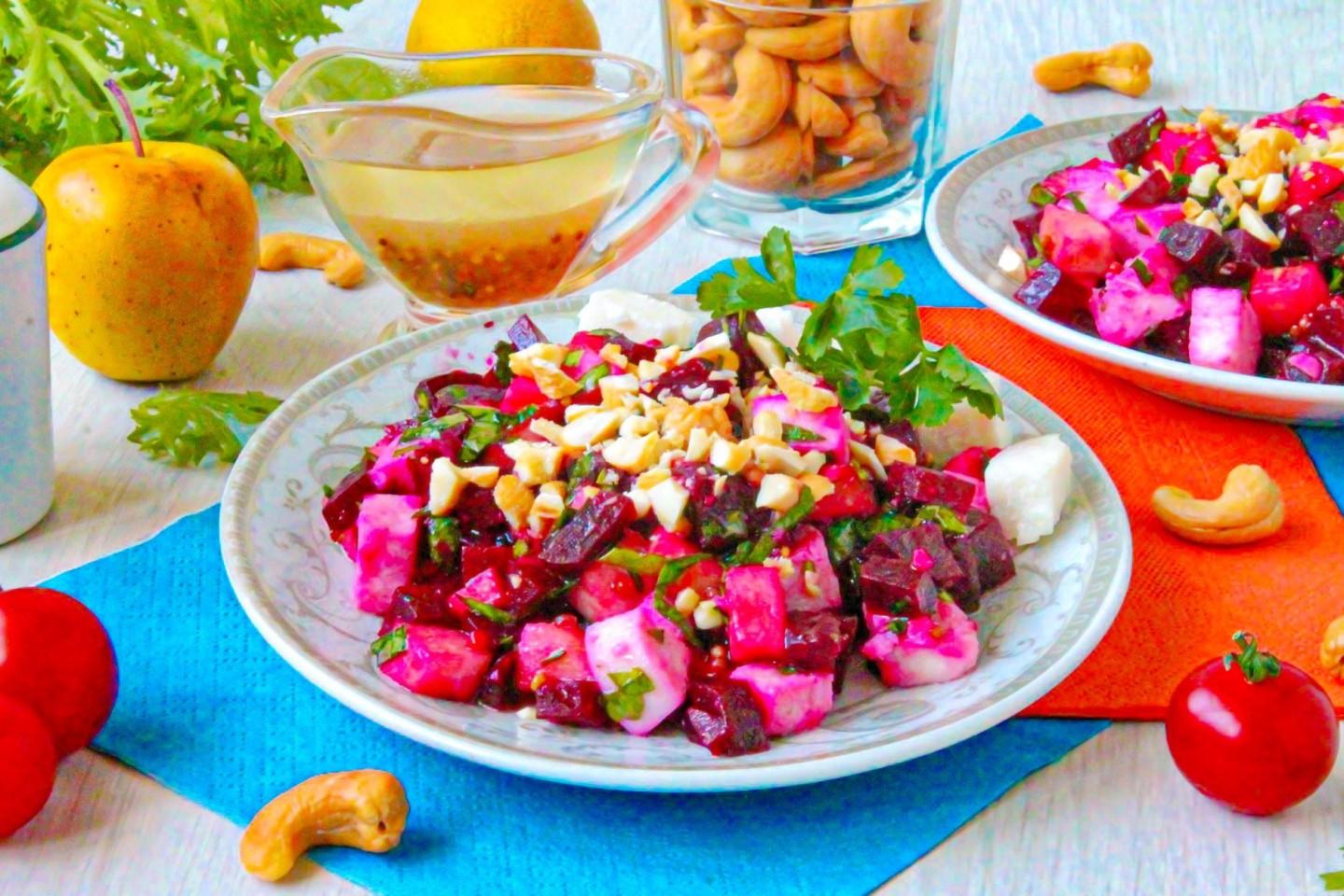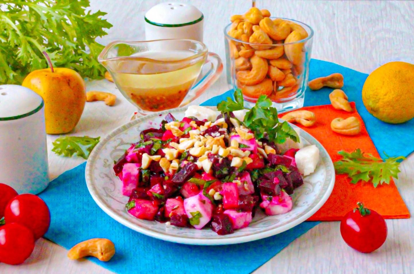 В советской кухне свекла чаще всего ассоциировалась с «селедкой под шубой» или винегретом. Тренд на средиземноморскую кухню принес нам сочетание сыра, орехов и медово-горчичных заправок. Наш рецепт — гибрид греческого салата и полезного детокса.
