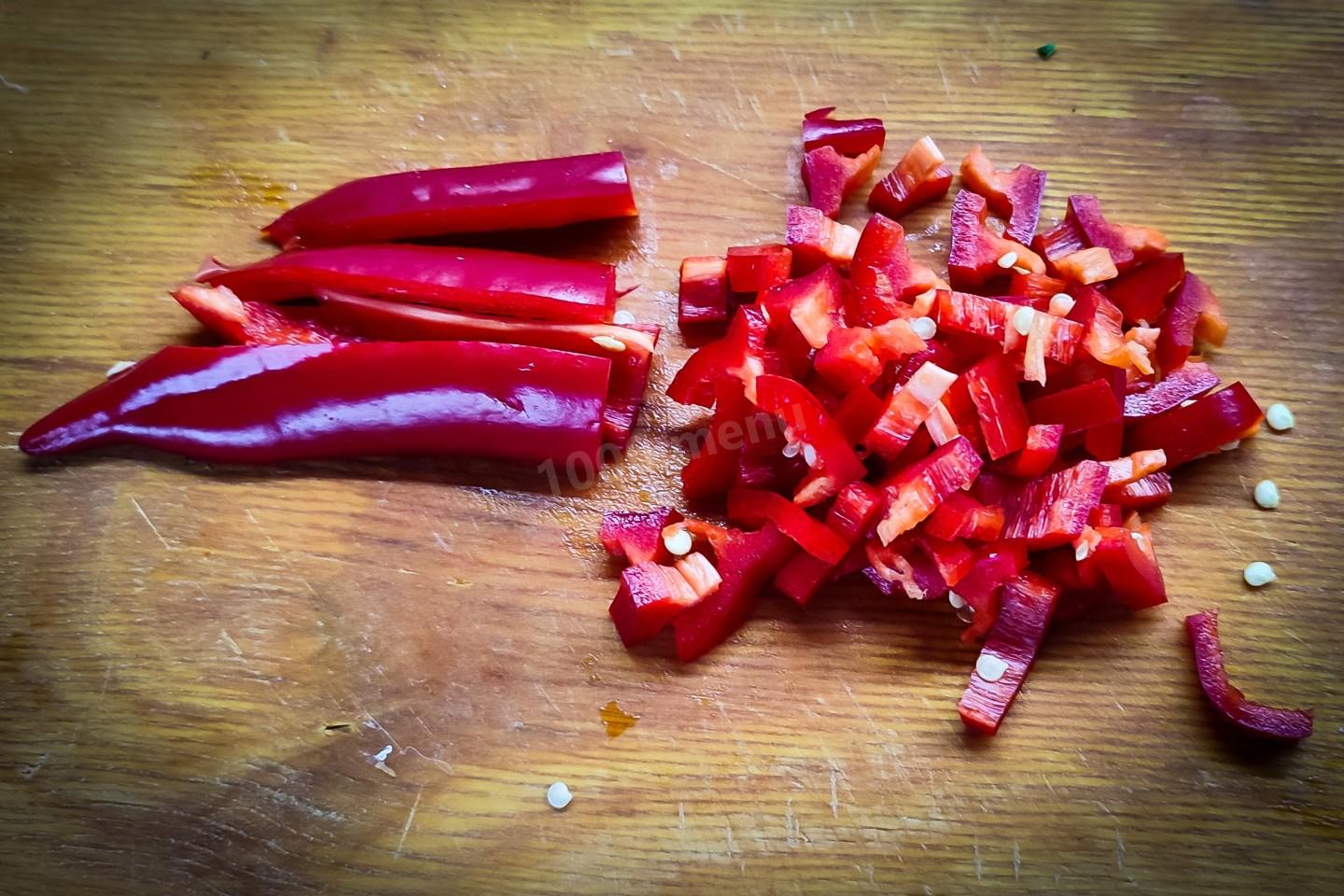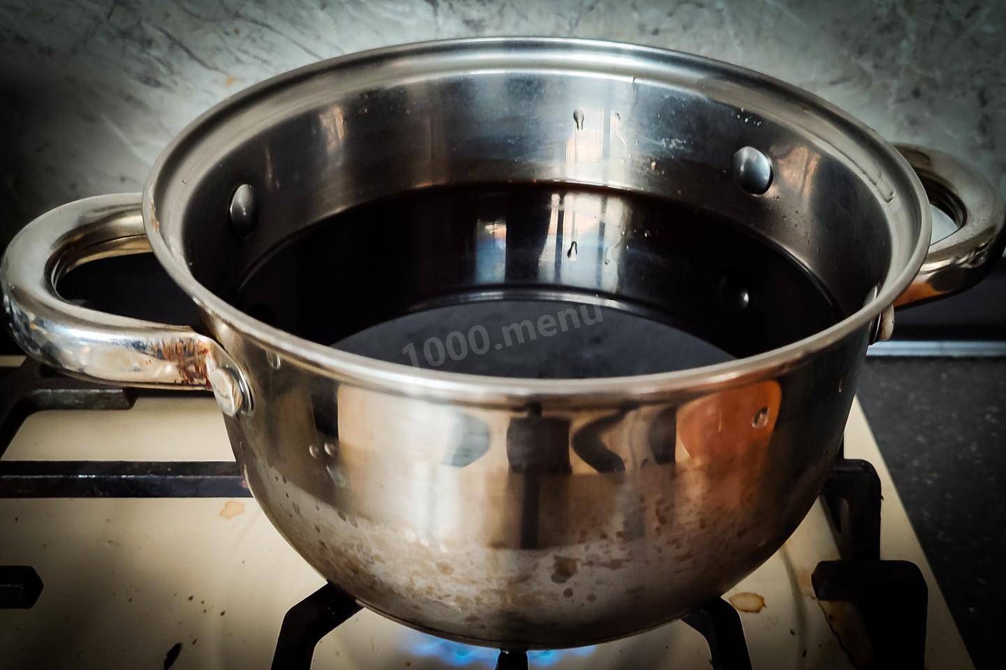 Жидкость перелить в кастрюлю и поставить её на огонь. Когда всё закипит, то всыпать перцы и проварить всё пять минут. Через пять минут отключить огонь и дать содержимому кастрюли остыть до комнатной температуры.