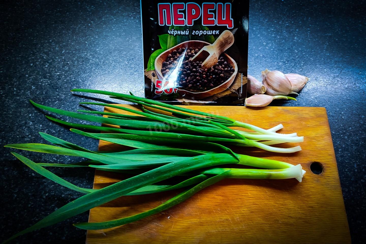 Также нам понадобятся зелень лука и чеснока. Его надо после очистки тщательно промыть под проточной водой, особенно если чеснок и лук произрастают в открытом грунте!