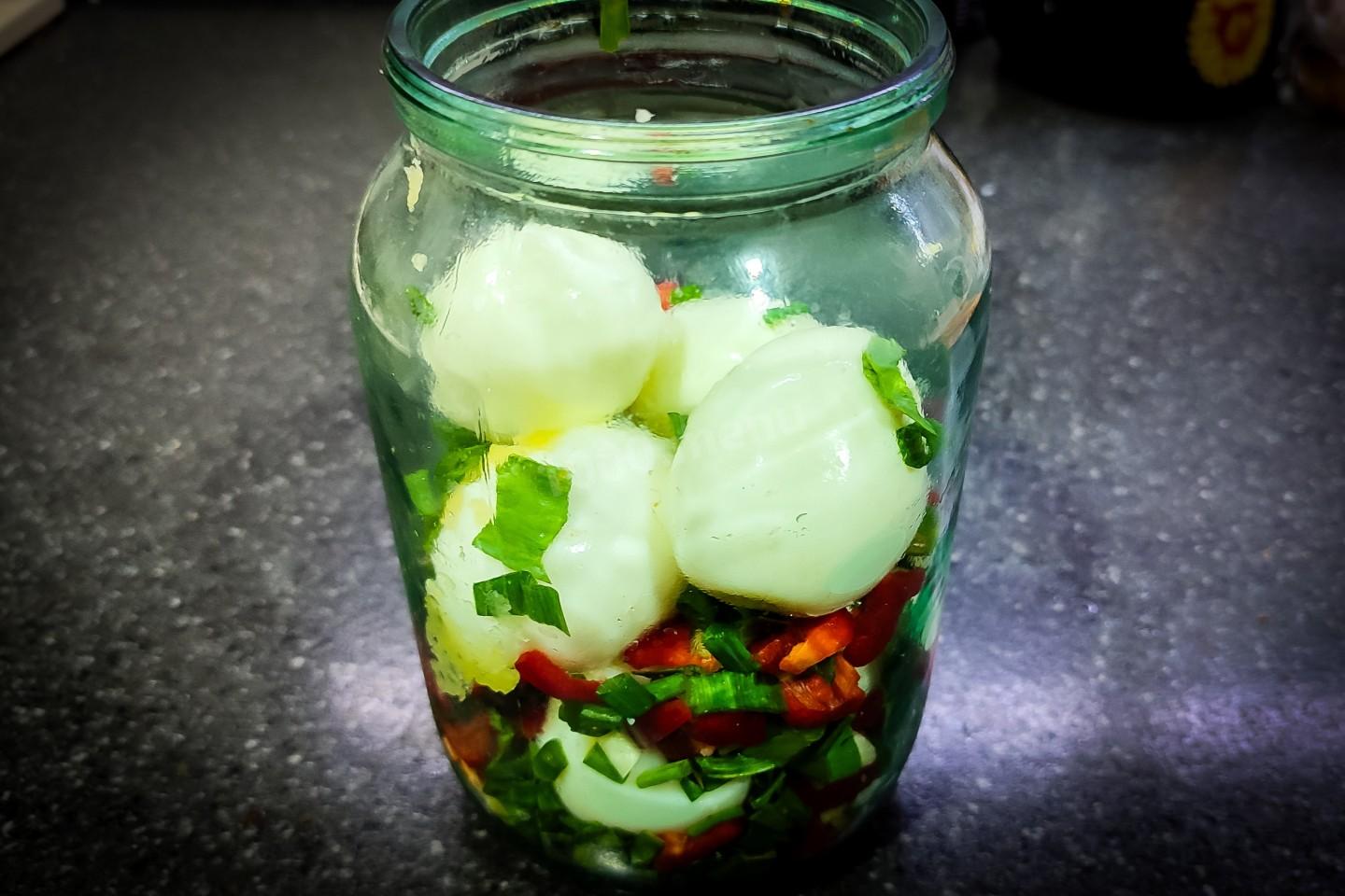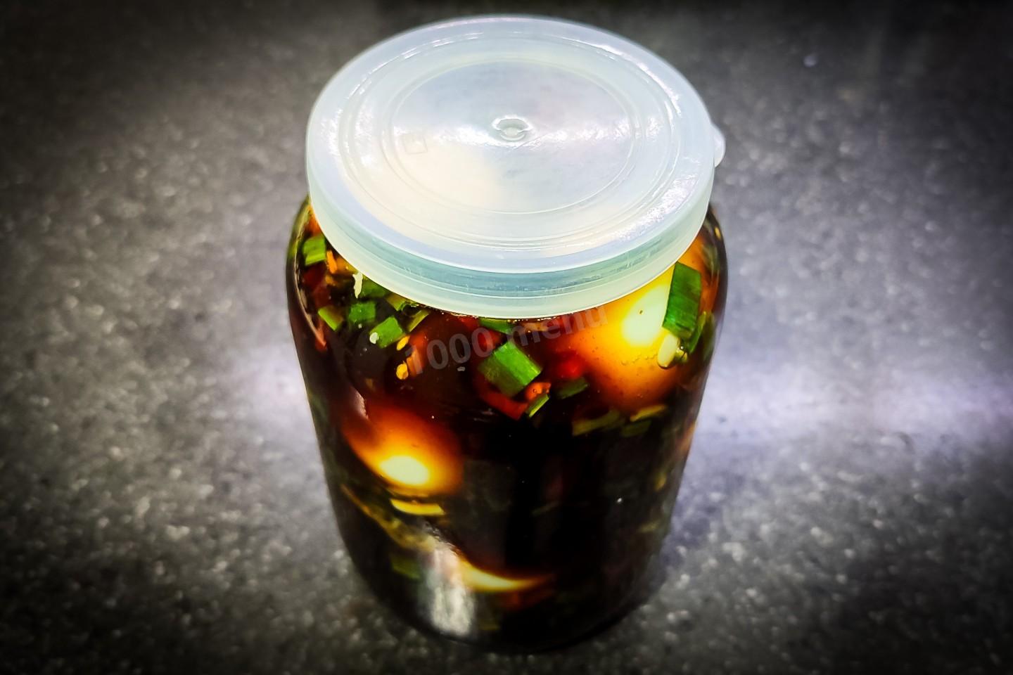 Теперь в банку с яйцами влить остывший маринад. Накрыть крышкой бонку и отправить в холодильник минимум на двое суток.
