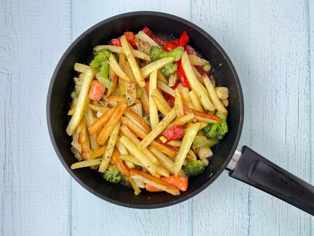 Low-carb: заменить картофель на цветную капусту (жарить на 1 минуту дольше).
