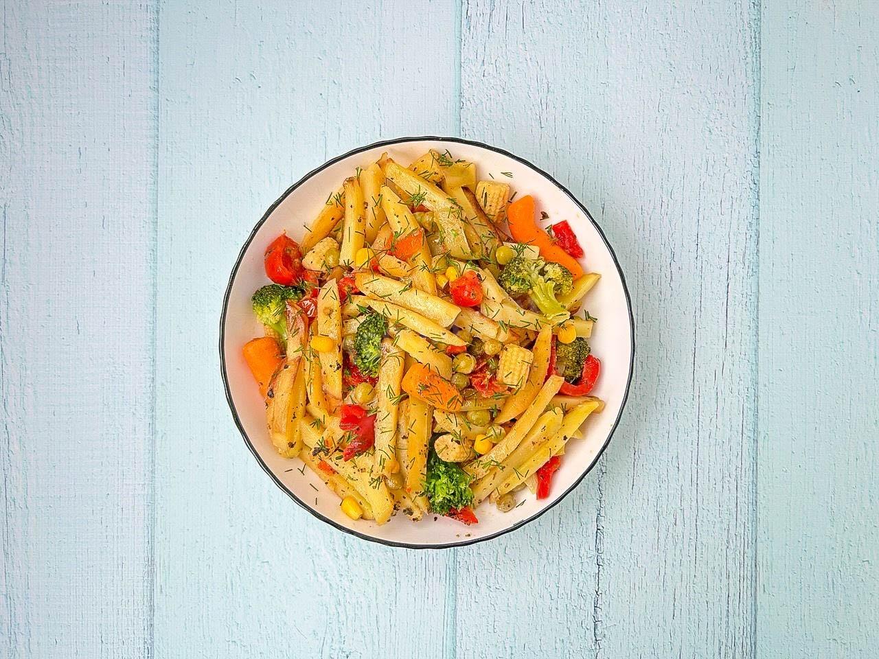 Картошка с замороженными овощами — это источник калия и растительной клетчатки. Быстрая заморозка сохраняет до 90% витаминов (C, группы B). Блюдо дает долгое насыщение, а масла при правильном нагреве (ниже точки дымления) безопасны и полезны для кожи и гормонов.