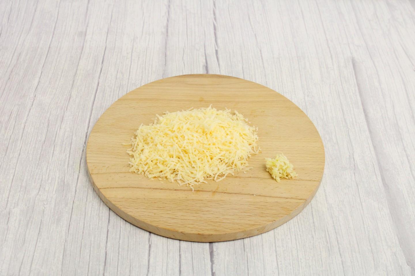 Сыр измельчите на мелкой терке. Сыр можно взять любой: твердый, полутвердый, мягкий. Главное, чтобы он был вкусным, качественным, без заменителей молочных жиров. Чеснок очистите, сполосните. Натрите чеснок на мелкой терке или пропустите через пресс.