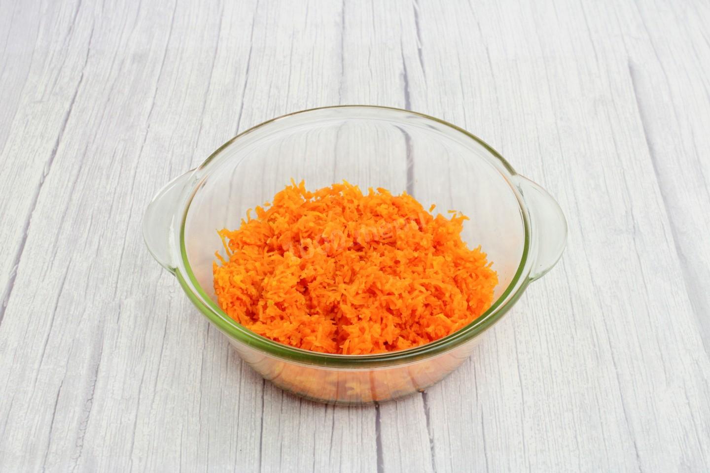 Морковь помойте щеткой под проточной водой, очистите. Крупную морковь разрежьте, выложите в кастрюлю. Сварите морковь почти до готовности в течение примерно 20-25 минут. Время варки будет зависеть от размера и свойств овоща, а также от особенностей работы плиты. Воду слейте, морковь остудите. Натрите морковь на мелкой или средней терке.