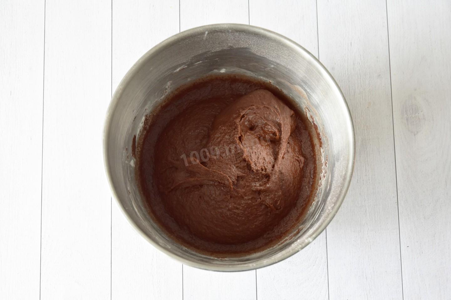 Частями всыпьте просеянную с какао муку и замесите однородное нелипкое тесто, при необходимости подсыпая понемногу еще муки. Так как теста много, я замешиваю его в планетарном миксере.