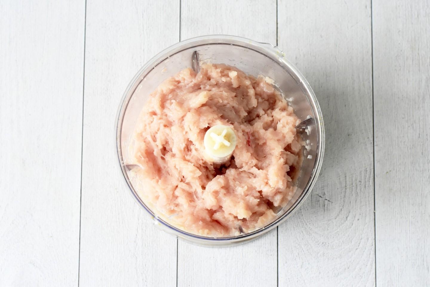 Куриное филе вымойте, обсушите, нарежьте на кусочки и прокрутите через мясорубку или измельчите в блендере. Если у вас готовый фарш, то при необходимости разморозьте его.