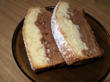 На дно формы сначала выкладываем тесто с какао, потом ореховое. Верх кекса можно посыпать измельченными орешками. Выпекаем кекс в разогретой духовке при 160-180С до готовности (около 1-1,5 часа). Достаем кекс с духовки и даем полностью остыть. Приятного аппетита!
