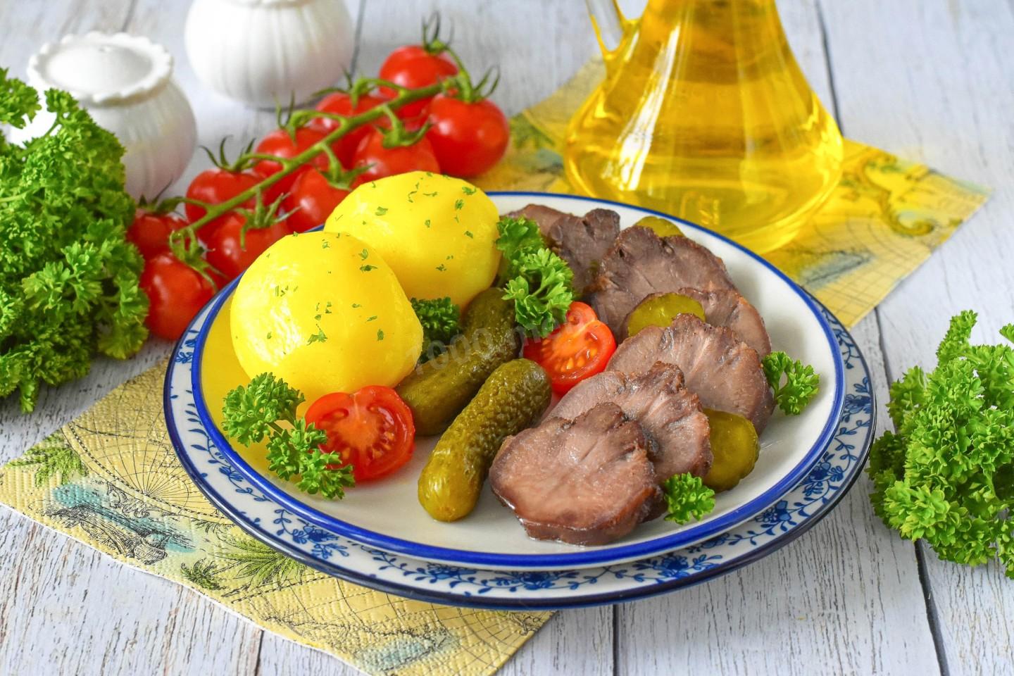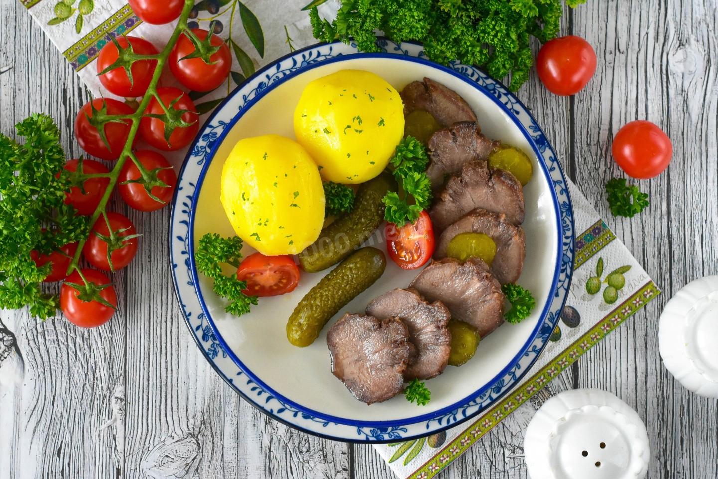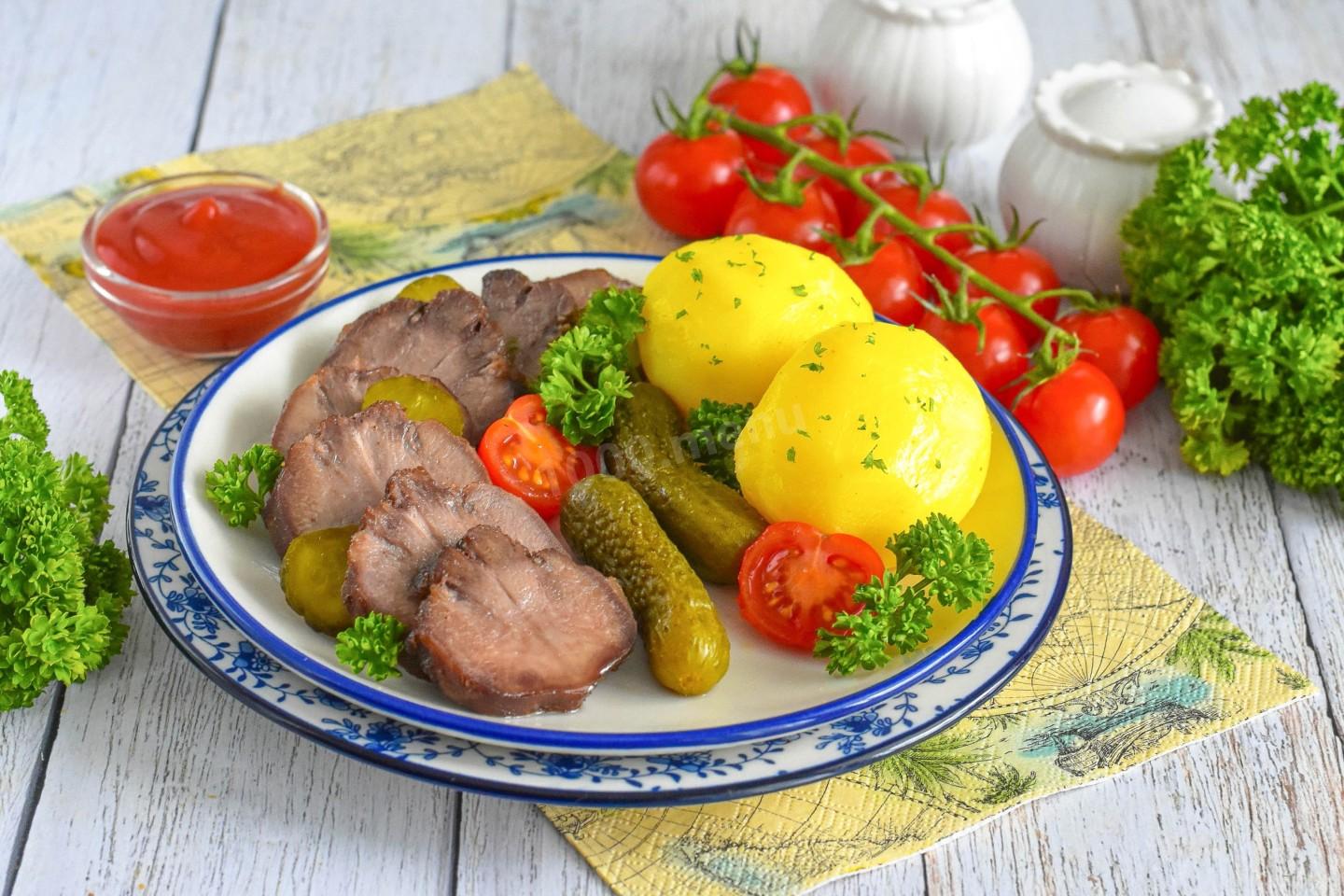 Подавайте язык горячим или охлаждённым, нарезав тонкими ломтиками. Идеально с картофельным пюре, гречкой, рисом или как холодная закуска с хреном, горчицей, маринованными огурцами.