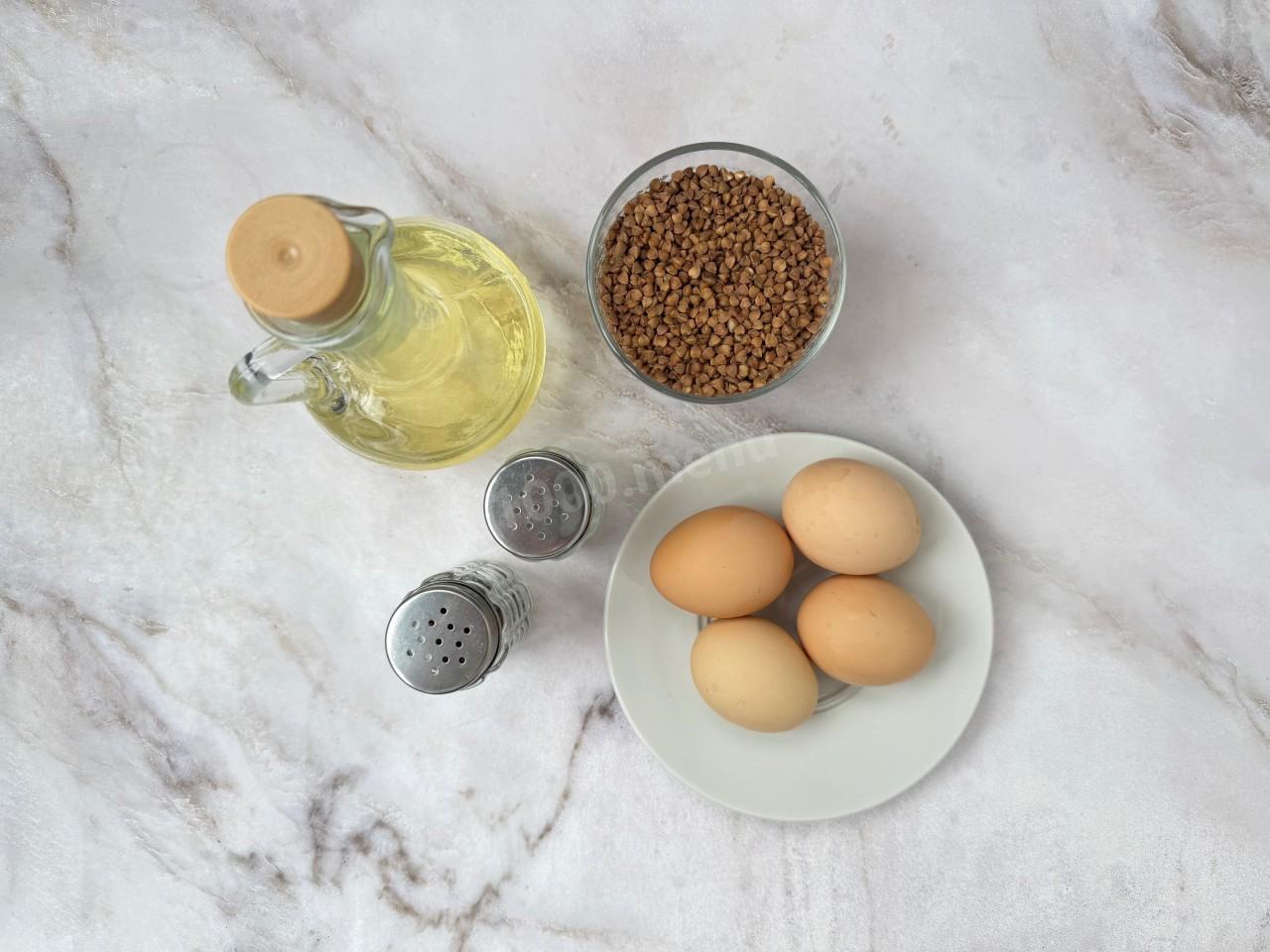 Гречку выбирайте светлую, без примесей и тёмных зёрен — так блюдо получится красивее. Яйца берите свежие, категории С1 — так они лучше взобьются. Масло — рафинированное, без запаха, для нейтрального вкуса.