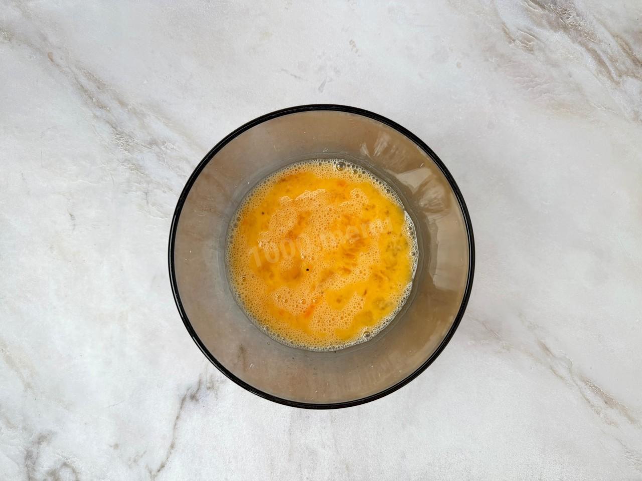Яйца вымойте под проточной водой. В отдельной миске разбейте яйца, добавьте соль и чёрный молотый перец по вкусу, взбейте вилкой или венчиком до однородной массы без комочков.