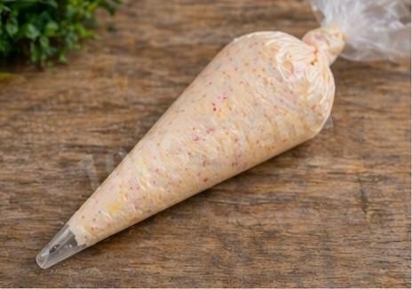 Переложите готовую начинку в кондитерский мешок. Если его нет — можно использовать плотный пакет, срезав уголок.
