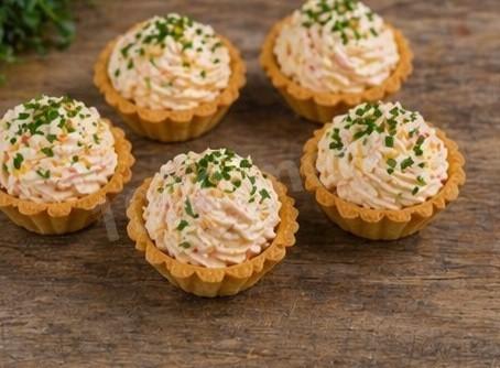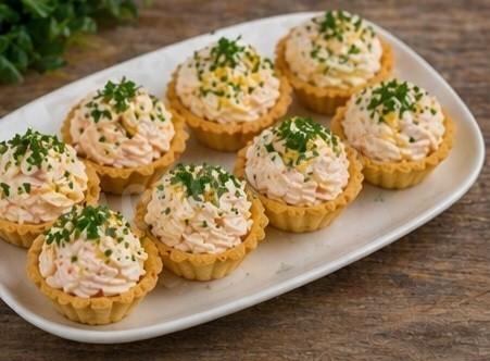 Эти тарталетки — отличный вариант быстрой закуски, когда нужно приготовить что-то симпатичное и вкусное без лишней суеты. Начинка получается мягкой, воздушной и хорошо держит форму, поэтому блюдо выглядит аккуратно и аппетитно даже на праздничном столе.