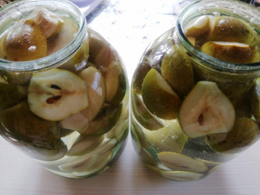 Заполняла банки грушами наполовину или чуть больше, ориентируясь на количество приготовленных для компота груш (большую миску с фруктами на две 3-х литровые банки).