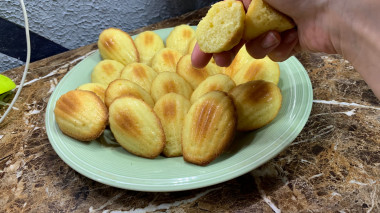 Готовое печенье Мадлен переложите на тарелку, охладите и подайте к столу. Приятного аппетита!
