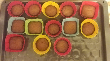 Супер. Сделал немного по вегански. Вместо яиц один банан, масло оставил, добавил с сахорной пудрой сухое готовое мороженое с какао, и мука была овсяная. Получилось супер. В формочки положил прям на 1/4. А то бы не пропеклось. Или подгорели бы края. Так что время приготовления примерно по рецепту. Можно чуть дольше если нет термометра и смотреть через стекло. Рецепт Супер. Мягкие печенки объедение. 16 шт. Получилось