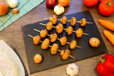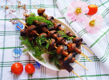 Анаит, грибочки очень легко готовятся:) в пакет сложила, всеми специями засыпала, потрясла и готово))) а потом главное на шпажки надеть, но можно и просто на противне запечь