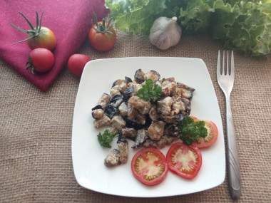 Сделала баклажаны тушёные в сметане с чесноком. Для удаления горечи присолила нарезанные кусочками баклажаны и оставила примерно на 15 минут. Затем хорошо отжала руками, промывать не стала, но в дальнейшем уже не солила. Обжарила баклажаны в раскалённом растительном масле, добавила чеснок, сметану, протушила всё вместе до нужной мягкости. Кусочки прекрасно держат форму, поэтому в следующий раз попробую очистить баклажаны от шкурки, для более нежной консистенции. Получилось очень вкусно, пикантно, с приятным чесночно- сметанным ароматом. Вкусно и горячим и остывшим. Спасибо за рецепт, Наталья!
