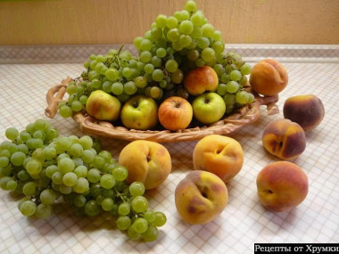 Аня, какая прелесть: персики, яблоки, виноград - все такое спелое и красивое, да, лето дает нам столько радости))) А это мои фрукты