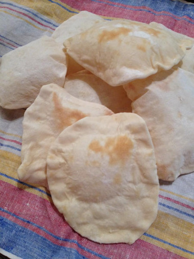 Пита теперь стала моей визиткой, я ее готовлю постоянно, как только закончится, делаю новую партию, вот и вчера пекла, с каждым разом она получается все лучше и лучше, уже лепешки надуваются подушечками, в этот раз сделала их маленькими не 25см, а всего по 10, их так получается больше и и удобнее кушать.