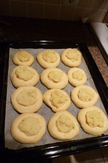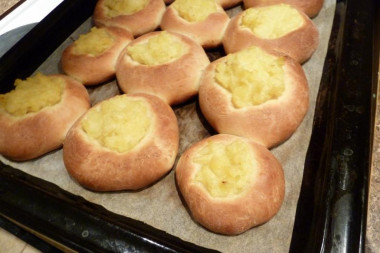 Испекла я ватрушки с картошкой в духовке из дрожжевого теста. Замесила по рецепту тесто, получилось оно мягкое, не липкое. Сформировала из него колобки, углубление сделала, стаканом, как автор и написала. С помощью ложки заполнила углубление пюре и смазала бортики взбитым яйцом. Запекала до румяности. Эти чудесные ватрушки с картофельной начинкой всем понравились. С чаем просто великолепно! Спасибо за рецепт!