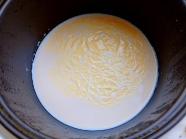 В чашу мультиварки влейте молоко. Молоко может быть любой температуры, но чем теплее молоко, тем меньше времени потребуется на подготовку перед томлением.