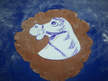 С коричневой мастики вырезаем по трафарету образ лошади.